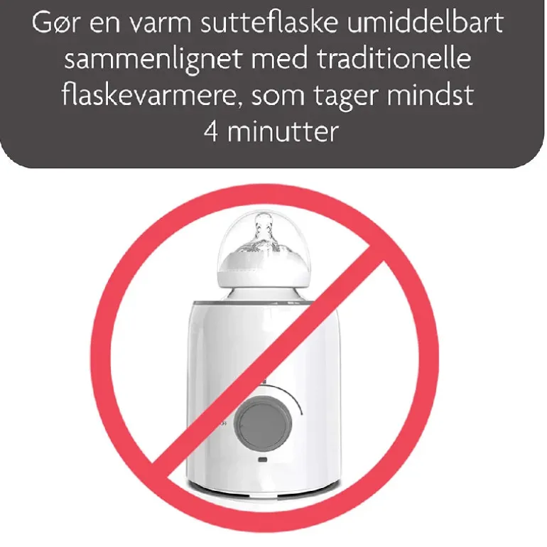 – Laver varme flasker MED DET SAMME uden at vente 3-5 minutter, som det er typisk for en traditionel flaskevarmer.