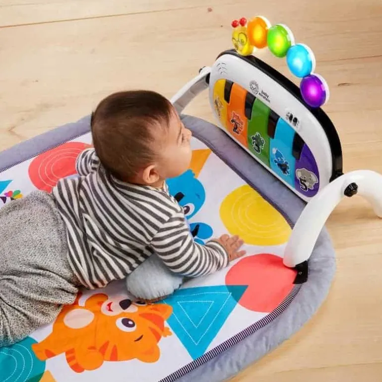 Orkestrer den perfekte legetid til til babyen med dette musik og sprog aktivitetsstativ. De musikalske sanse vil blive stimuleret I dette aktivitetsnest. Babyen kan spille på klaveret takket være magic touch teknologien. Derudover er der en lille pude inkluderet, der gør det meget mere behageligt for babyen at ligge på mave og træne de nye muskler. Der er 7 stk aktivitetslegetøg med samt mere end 70 forskellige lyde og melodier, så din baby vil have mulighed for masser af forskellige aktiviteter. Dette aktivitetsstativ vokser med babyen. Baby Einstein vil altid inspirere din babys nysgerrighed. Anvend 3 AA batterier – ikke inkluderet.