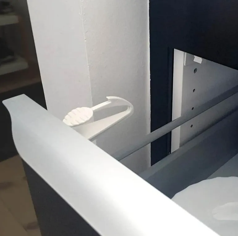 Du kan bruge Easy Fix Catch til at forhindre nysgerrige børn i at få fingrene klemt i skuffer og skabe. Den er simpel at bruge og kan kun åbnes af voksne. Du kan montere låsen med stærk selvklæbende tape og kan bruges til de fleste skuffer og skabe. Emballagen er 100% bionedbrydelig og Cradle to Cradle certificeret. Det betyder, at den vil blive naturligt nedbrudt, når du smider den væk, og efterlader ingen spor, som kunne skade vores planet. På den måde kan du beskytte din lille guldklump fra ulykker i hjemmet og tage ansvar for den verden, som dit barn vokser op i.