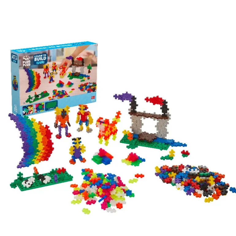 Plus-Plus Learn to build indeholder alt hvad du har brug for, for at komme i gang med Plus-Plus. En instruktionsbog giver trinvis vejledning til at bygge 2D mosaikker samt 3D-figurer – dyr, mennesker, bygninger og meget mere! Sættet indeholder 500 brikker i blandede basic farver, 100 neon brikker, 2 byggeplader og en byggevejledning. Produktet er naturligvis kompatibelt med alle andre Plus-Plus-produkter. Ikke egnet til børn under 3 år på grund af små dele.