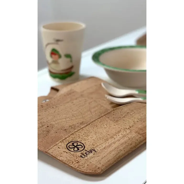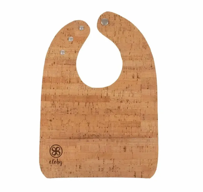 Det bløde og fleksible kork kan aftørres og er pletresistent, hvilket gør det til et perfekt materiale til en hagesmæk. Skyl eller tør forsigtigt hagesmækken af efter brug og så er den klar til næste måltid.