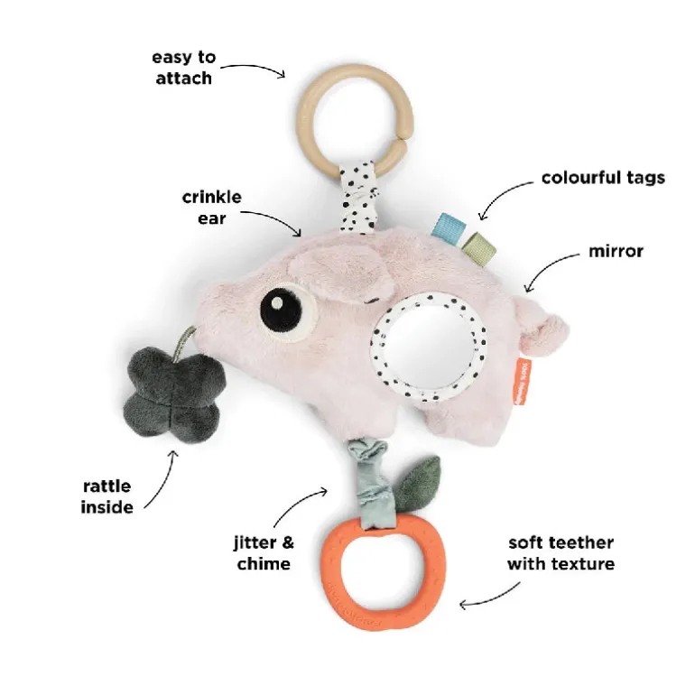 Vedhæft Pigee med ophængsringen og lad dit barn nyde alle de stimulerende funktioner