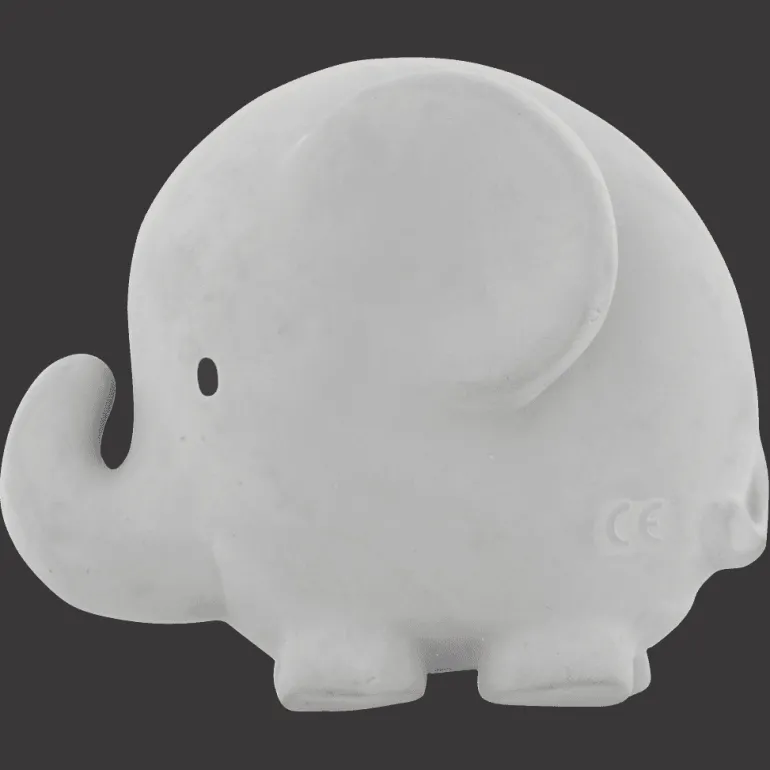 En sød lille gummi elefant. Den er fantastisk til små ømme tænder og nemt for barnet at gribe og klemme om. Produktet har en lille klokke, der laver små ranglelyde som vil glæde og underholde de små. Produktet er Fremstillet af naturgummi, der høstes fra gummitræer, med en 12-årig livscyklus. BPA og phtalates fri.