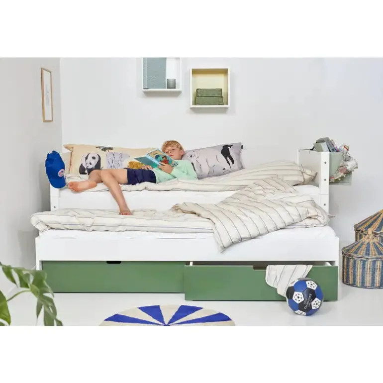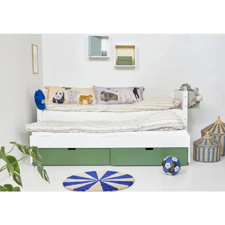 Det er den perfekte seng til børneværelset, hvor der ofte er overnattende eller søskende, der deler børneværelset. Og hvis du har meget legetøj i rummet, kan du gemme det under sengen i skufferne. Den perfekte seng, hvis du vil have en masse smarte funktioner.