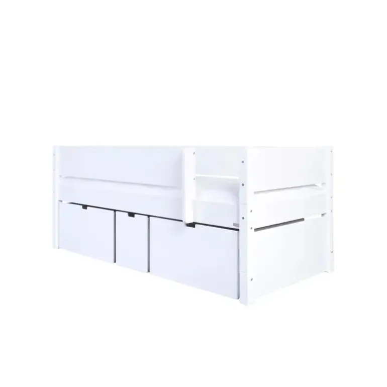 Nanna sengekombinationen er lavet til dig, der har brug for masser af opbevaringsrum. Skufferne er store og er gode til at skjule rodet på børneværelset. Sengehest kan tilkøbes
