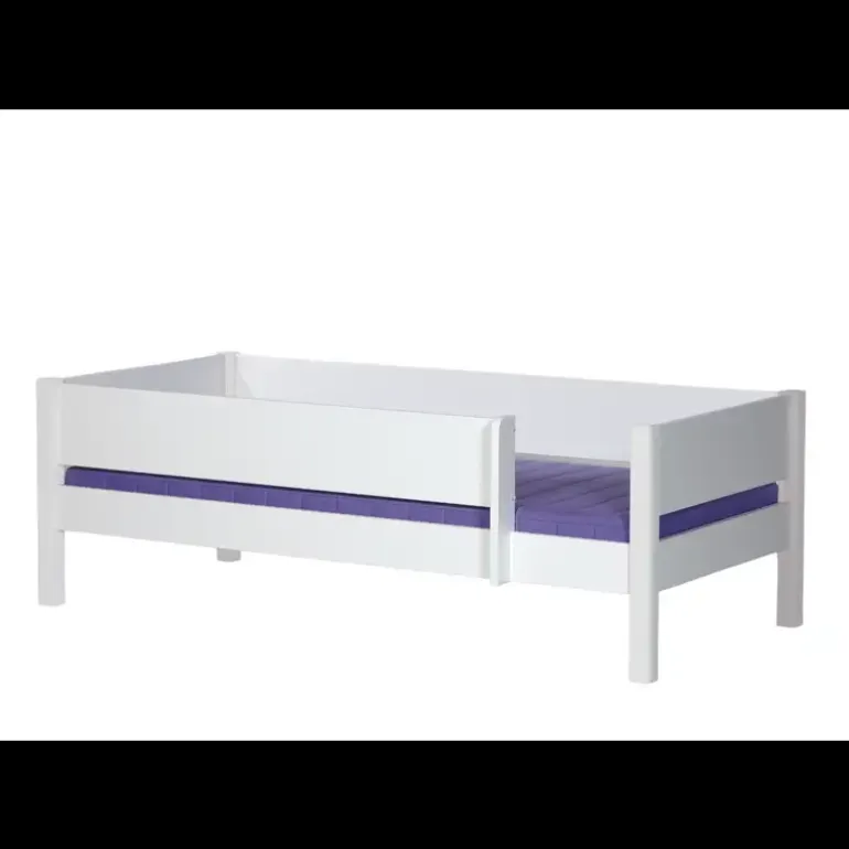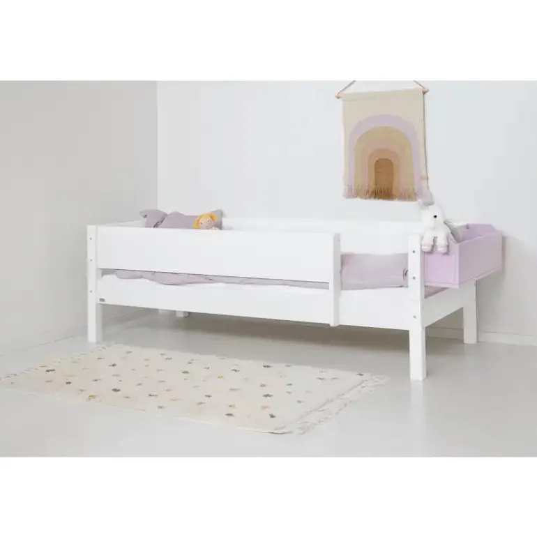 Rigtig god begynderseng – en sikker overgang fra babysengen eller måske fra den lille juniorseng. Her kan barnet sove trygt og godt – “indrammet”, så det ikke falder ud, men samtidig med nem adgang til sengen uden at skulle kravle over sengehesten.