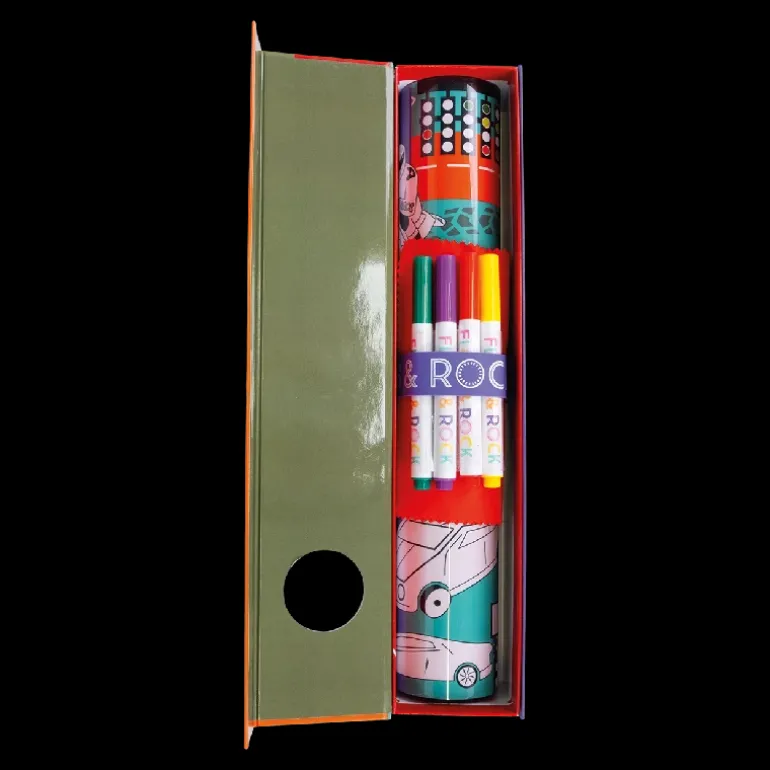 Floss & Rock´s helt nye Male og tegne måtte er en genial multi-play-aktivitet til rejsen. Rul blot måtten ud til farvelægning, prik-til-prik, og labyrint. Når du er færdig, tørrer du måtten af, ruller den sammen og bruger båndet til at pakke den ned i den praktiske æske, så den kan bruges igen og igen! Måtten indeholder 4 farvede penne, en praktisk rengøringsklud, et spændebånd og en genanvendelig opbevaringsboks. Genial til at have med på farten.