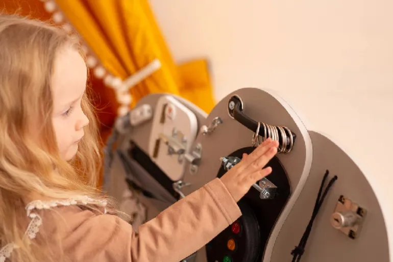 Sjovt og den aktivitetstavle med flest elementer!. Denne model kan både stå frit på gulvet og monteres på væggen.