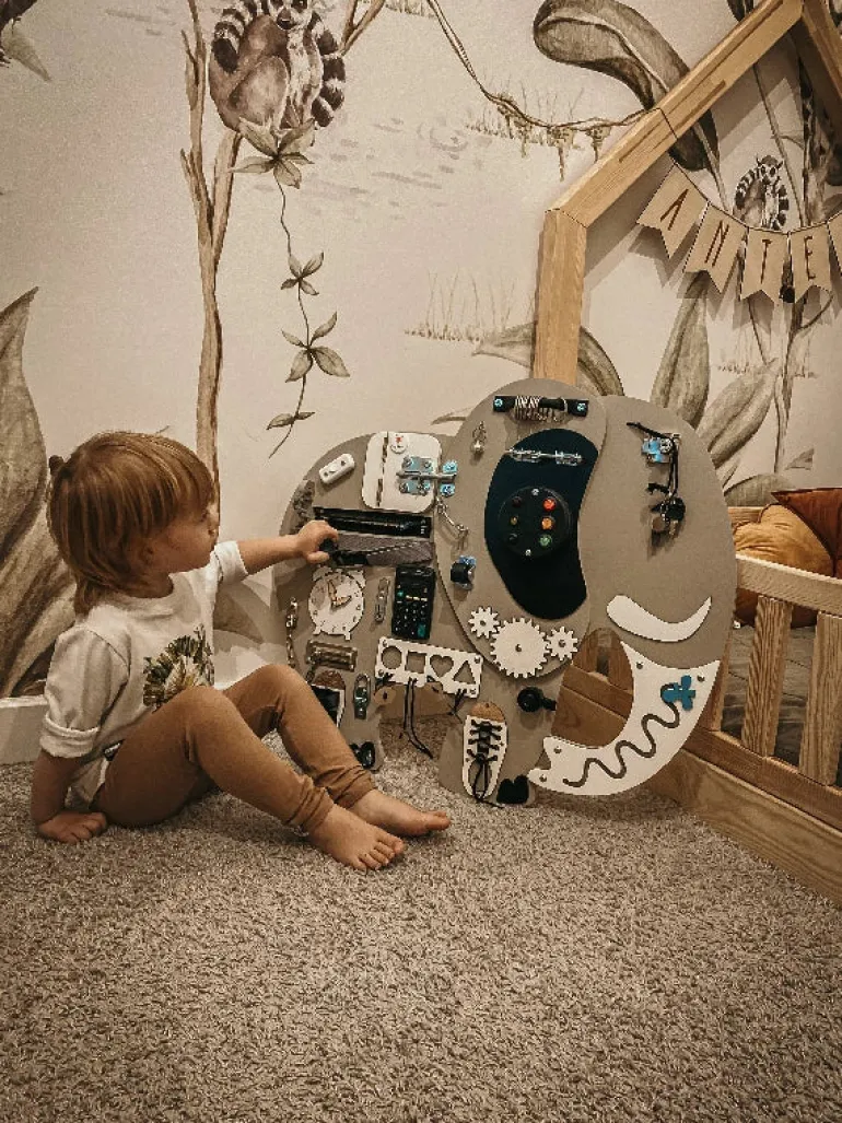Sjovt og den aktivitetstavle med flest elementer!. Denne model monteres på væggen.