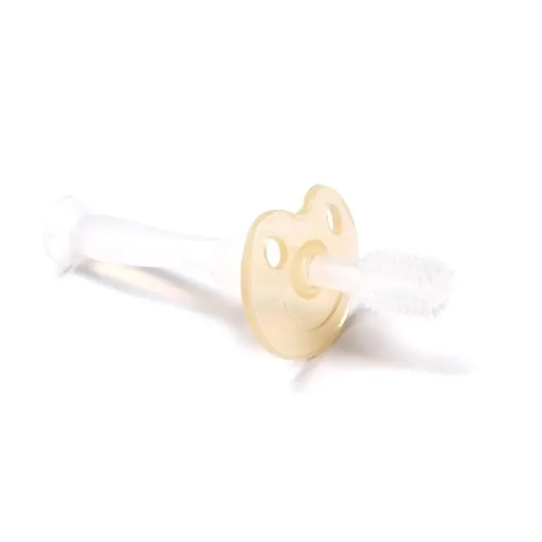 Fremstillet af blød 100% fødevaregodkendt silikone, hvilket gør tandbørsten sikker for dit barn at tygge og sutte på.