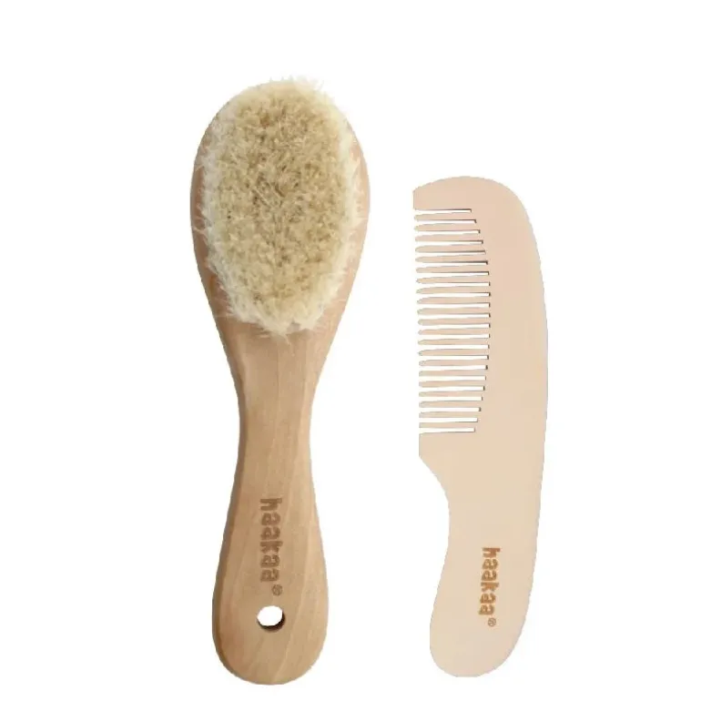 Haakaa kam og børste er et sæt med både en lækker kam af træ fra gummitræ og en børste med hår af gedeuld. Lækkert og skånsomt sæt, fordi kun det bedste er godt nok til din baby. Haakaa kam og børste er den perfekte babyshower gave til kommende mødre!