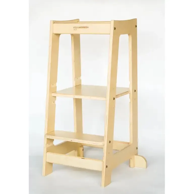Hemmingsen Kids Maya Læringstårn Natur er velegnet til børn i aldersgruppen 1-6 år. Tårnet er designet af Hemmingsen Kids ejer, Nina Liv Olesen, og har fået sit navn efter hendes datter, Maja. Det sammenklappelige læringstårn er skabt af miljøvenligt og holdbart birketræ, og det egner sig perfekt til at stimulere og underholde børn, mens du f.eks. laver mad, ordner vasketøj eller udfører andre praktiske opgaver, der kræver en smule fokus.
