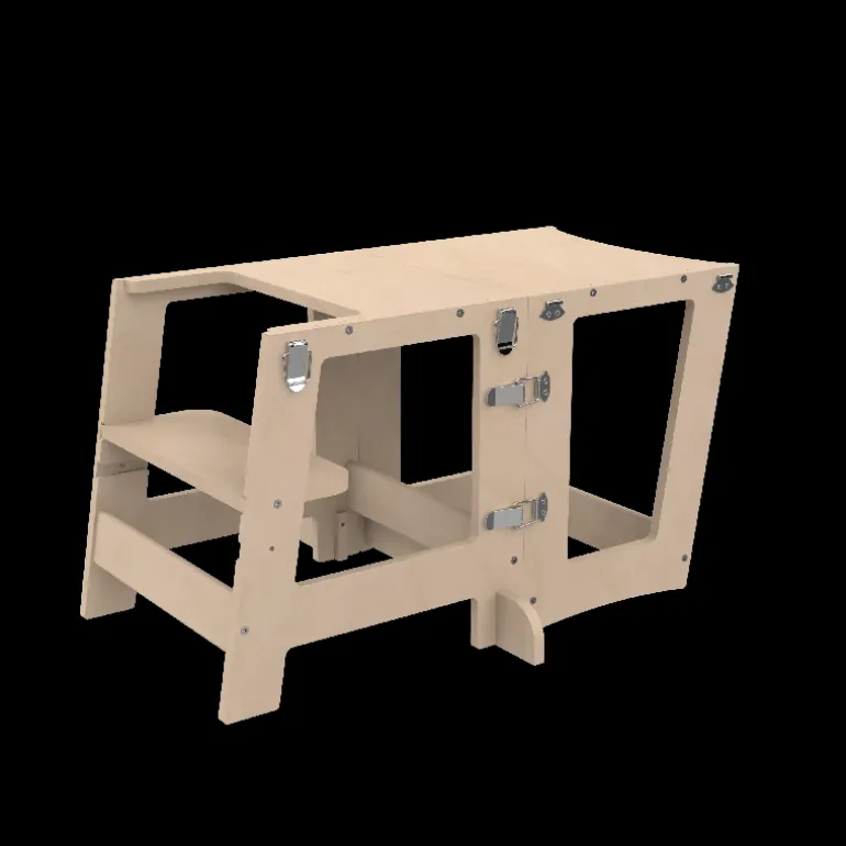 Derudover kan det sammenklappelige læringstårn også fungere som bord og stol, da tårnet kan indstilles i flere forskellige højdeniveauer for at matche dit barns udviklingstrin. Tårnet er designet med vores intelligente og innovative klik-system, hvilket gør det nemt at samle, adskille og justere efter dit barns behov.