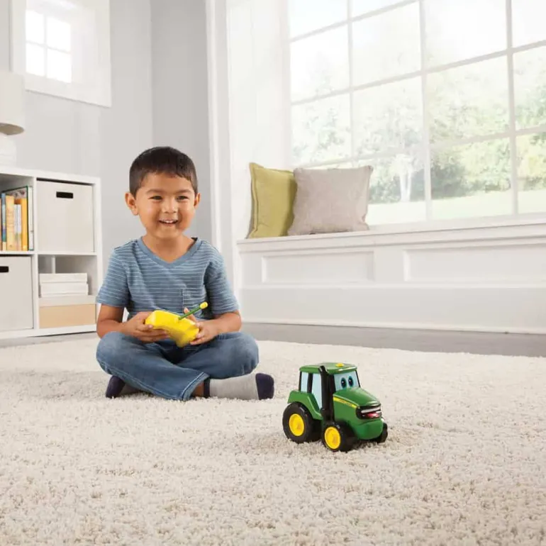 Min første fjernstyret traktor! Johnny Traktor er perfekt til yngre børn med hans meget nemme styring; kun to knapper får Johnny Traktor til at køre fremad og svinge mod venstre. Designet med blødt plast og afrundede hjørner.Kræver 1 x 9V & 3 x AA batterier (medfølger ikke)
