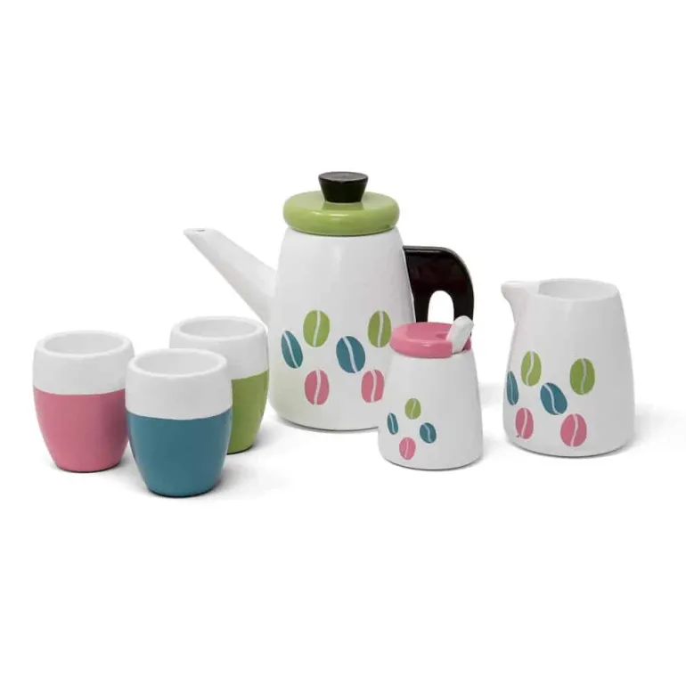 Kaffekande med låg. Sukkerskål med låg og teske. Mælkekande samt 3 krus. I alt 9 dele Str. Kande: H: 12 cm