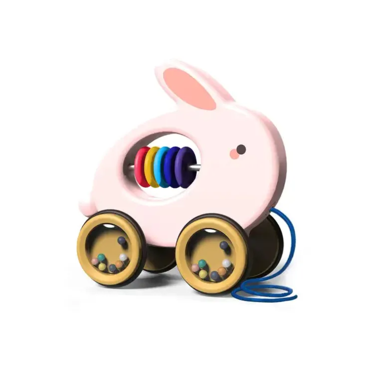 Aktivitets-kanin fra Scandinavian Baby Products. Med denne søde kanin er der fart over feltet! Dit barn kan skubbe kaninen hen ad gulvet eller trække den efter sig. På denne måde motiverer kaninen dit barn til at bevæge sig fremad uanset om din baby møffer sig frem, kravler eller allerede tager sine første skridt. Vores søde kanin har rangle-lyde i alle fire hjul samt aktivitetsruller i kroppen.