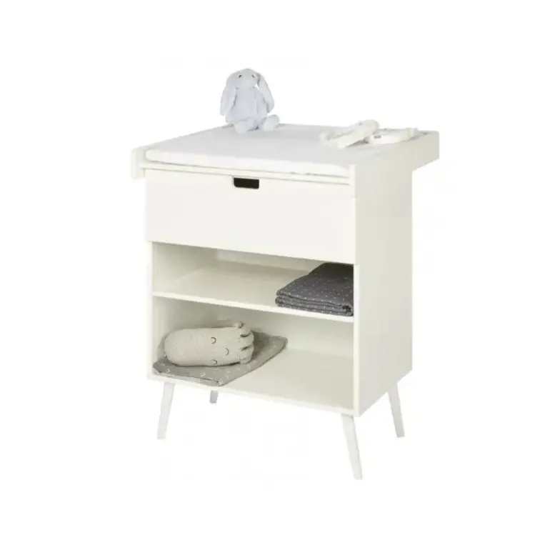 Puslekommode med god pusleplads og gode opbevaringsmuligheder under i form af stor stabil skuffe og en højdejusterbar hylde. Kommoden kan efterfølgende anvendes alene, uden pusleplade. Den er i rigtig høj kvalitet og vil være uden brugsmærker fra pusletoppen. Puslekommoden er i et stilren design og utrolig robust, så du sikre en stabil pusletop til barnet. Mulighed for tilkøb af puslehynde