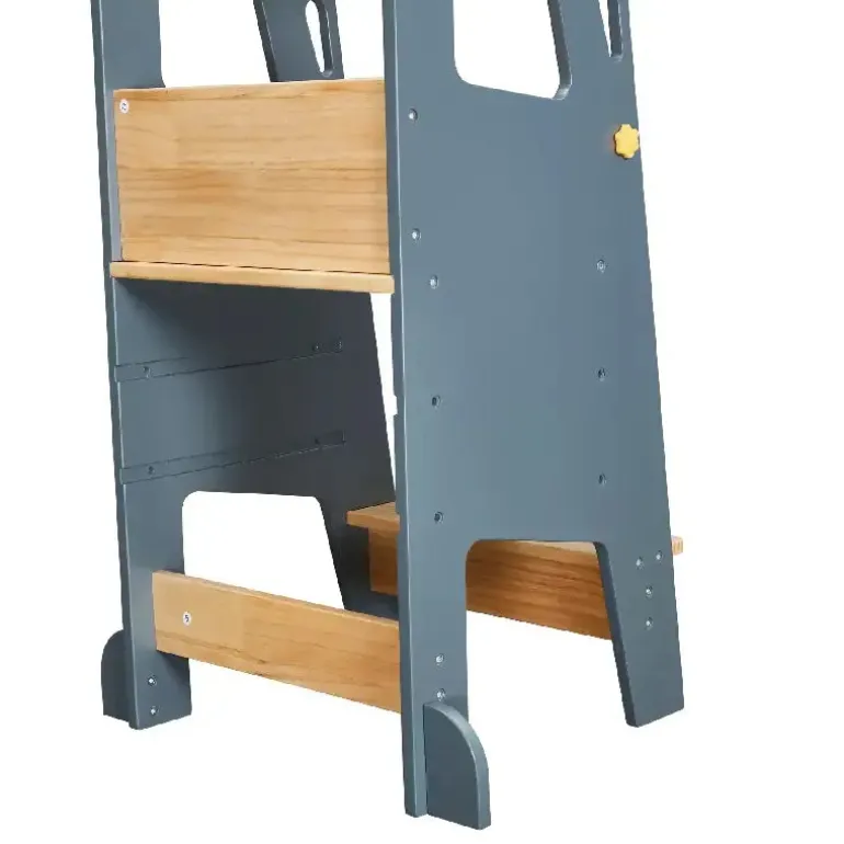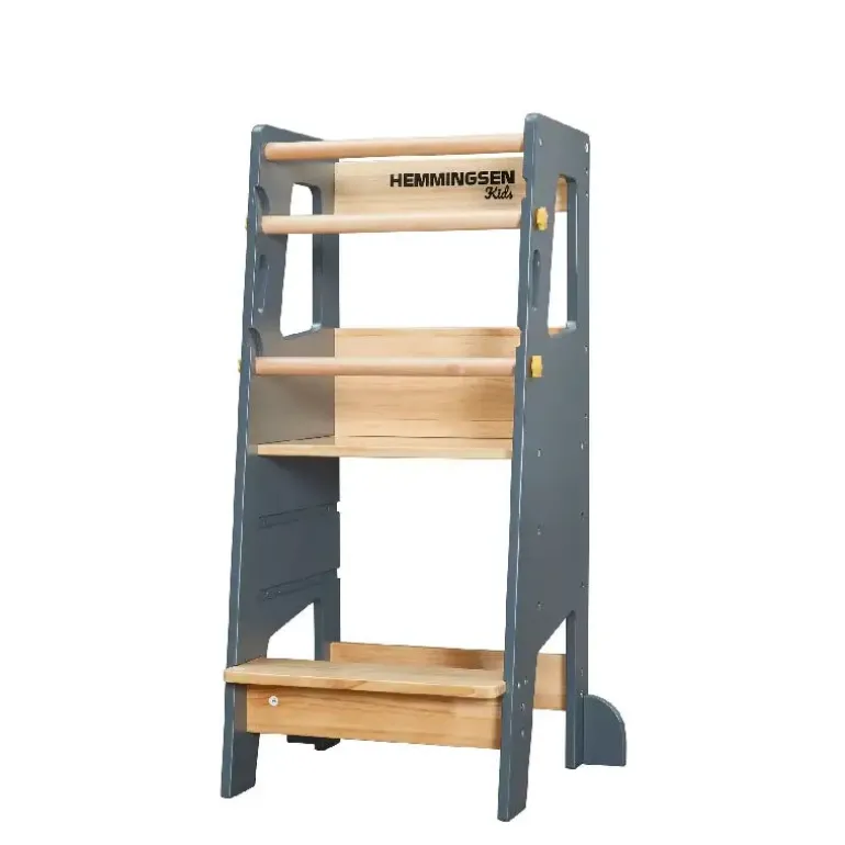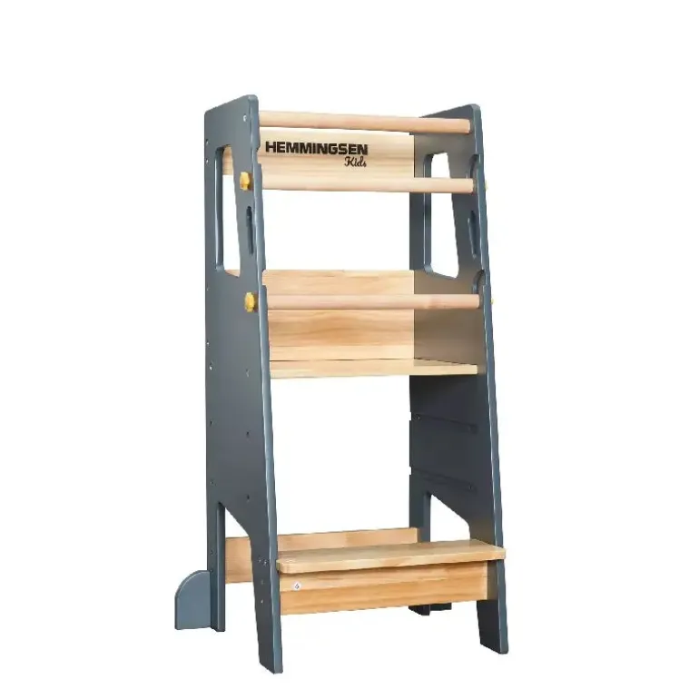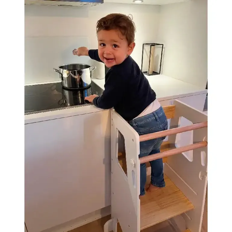 Lad dit barn deltage i køkken aktiviteter på en sikker måde. Liv Lærinsgtårnet er et unik læringstårn som er produceret i holdbart fyrretræ og bæredygtige materialer. Ekstra sikkerhed bagpå, så dit barn ikke kan falde ud. En sikkerhedskinne fastgjort med skruer samt to let aftagelige sikkerhedsbøjler med knopskruer. Leveres med skridsikre dutter,antivippe fødder, samt justerbar platform, unik til børn fra 1-5 år. Vores trækniv medfølger