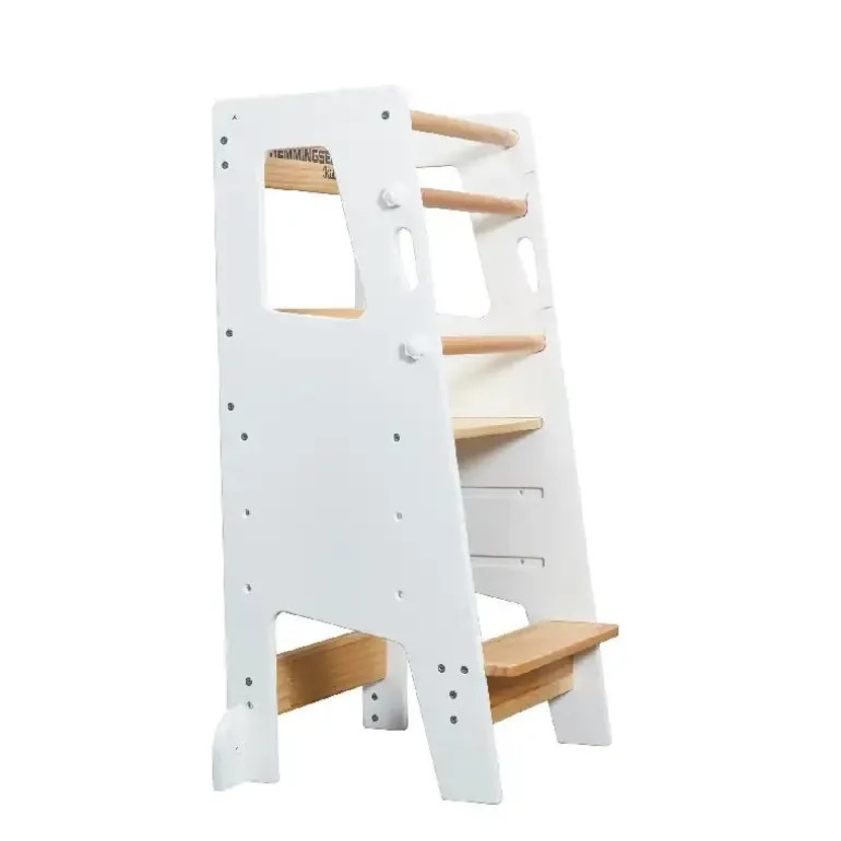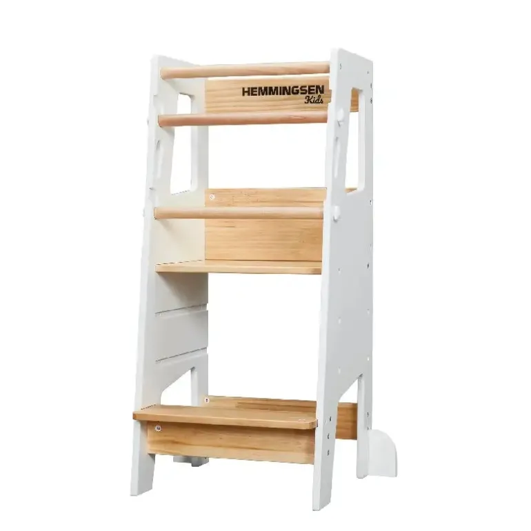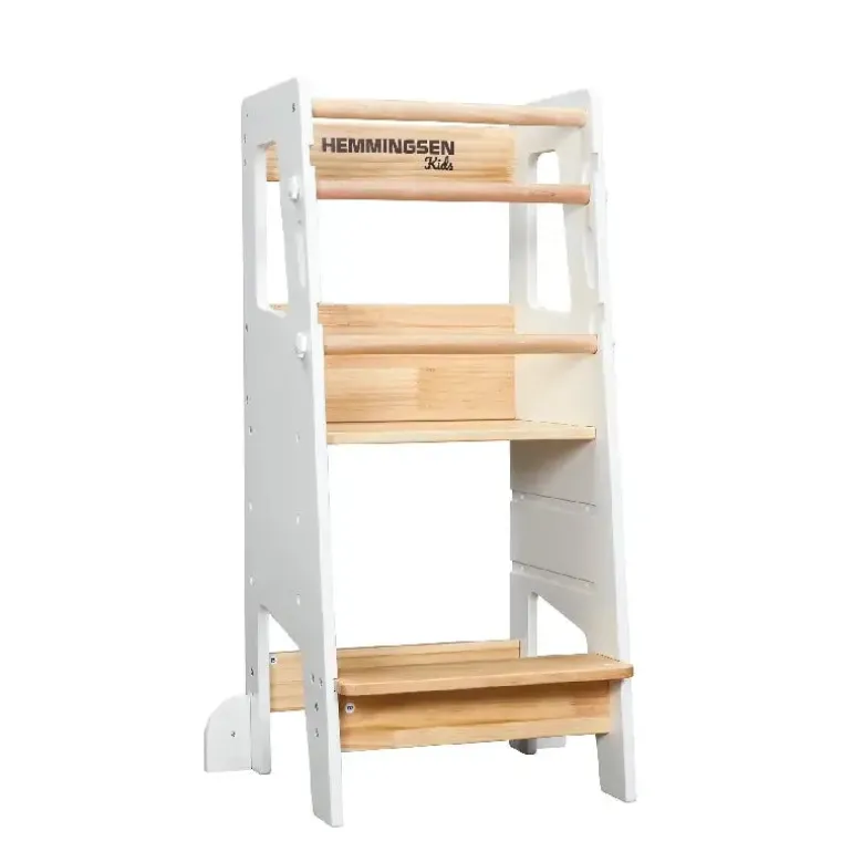 Lad dit barn deltage i køkken aktiviteter på en sikker måde. Liv Lærinsgtårnet er et unik læringstårn som er produceret i holdbart fyrretræ og bæredygtige materialer. Ekstra sikkerhed bagpå, så dit barn ikke kan falde ud. En sikkerhedskinne fastgjort med skruer samt to let aftagelige sikkerhedsbøjler med knopskruer. Leveres med skridsikre dutter,antivippe fødder, samt justerbar platform, unik til børn fra 1-5 år. Vores trækniv medfølger