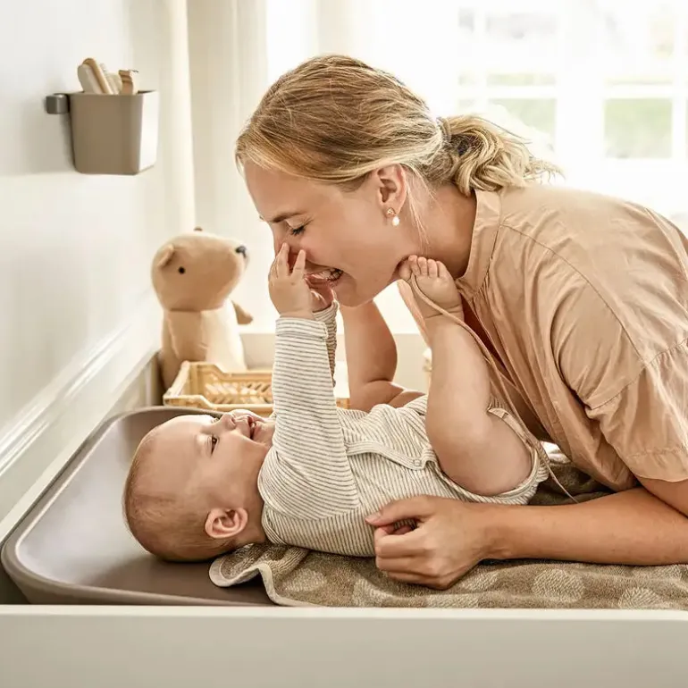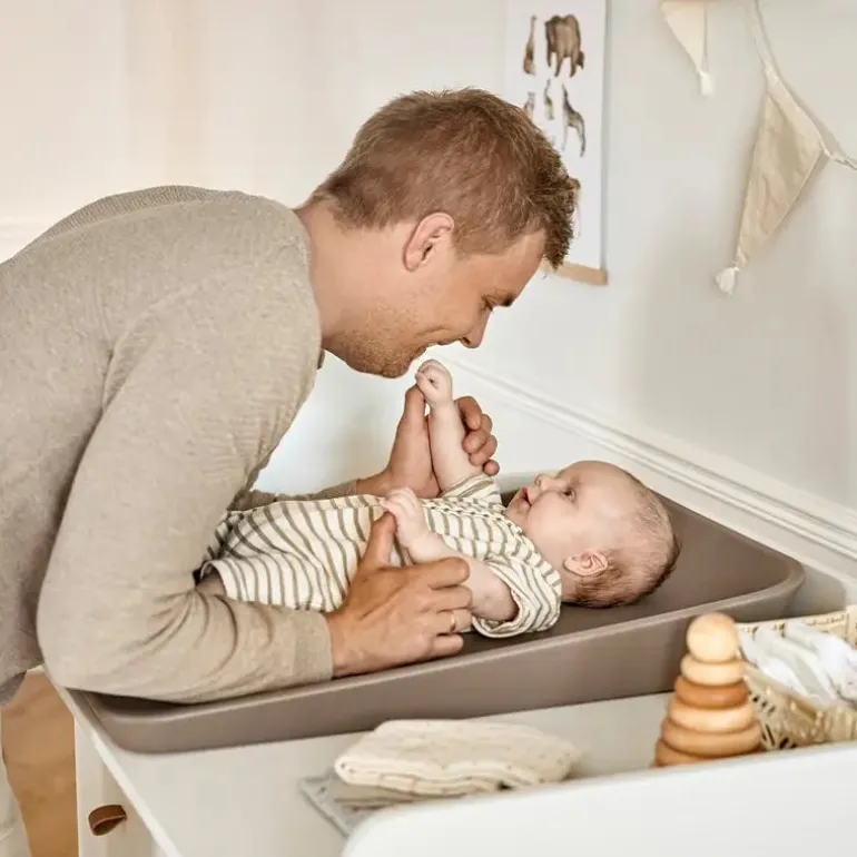 Leander Matty puslepude Mocca er en alt-i-en puslepude. Uanset om du er derhjemme eller på farten. I modsætning til mange andre puslepuder, så er Matty™ lavet af et blødt skummateriale, der er både rart at røre ved og ligge på. Du behøver derfor ikke stofbleer eller andet betræk. Matty™ er designet til en hverdag med børn. Den er let at tørre af og rengøre, og overfladen er helt tæt, så ingen væsker kan trænge ned i puden. Du behøver derfor ikke at bekymre dig om betræk, der hele tiden skal vaskes. Matty™ er altid klar til brug.