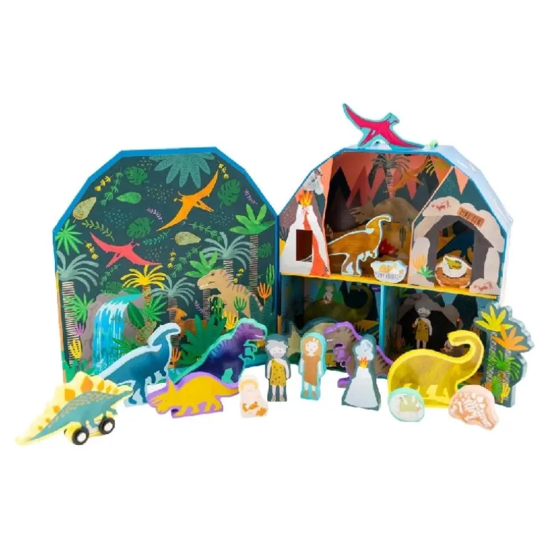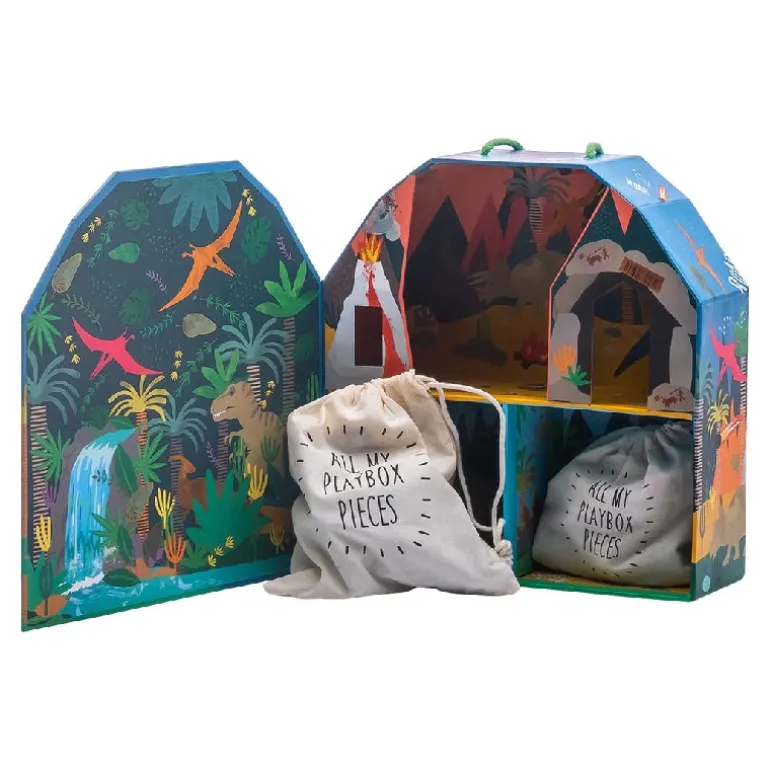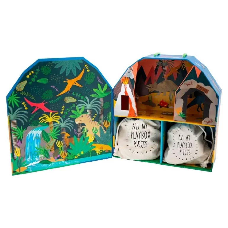Denne forhistoriske Dinosaur kuffert er perfekt til at tage med på farten! Inde i den genanvendelige æske finder du flere områder med jungle at lege i. Fantasien vil løbe løbsk med 18 træfigurer (hvoraf to faktisk er dinosaurer på skateboards og kan suse rundt på hjul!) Oplev hulemennesker, dinosaurer og en hurtig stegosaurus – de kreative lege ideer bliver ved og ved! Når du er klar til at vende tilbage til nutiden, kan du opbevare alle dine karakterer i den praktiske bomuldstaske med snoretræk. Hold alt pænt og ryddeligt, og bær rundt på din legeboks ved hjælp af det seje bærehåndtag – klar til dit næste eventyr.