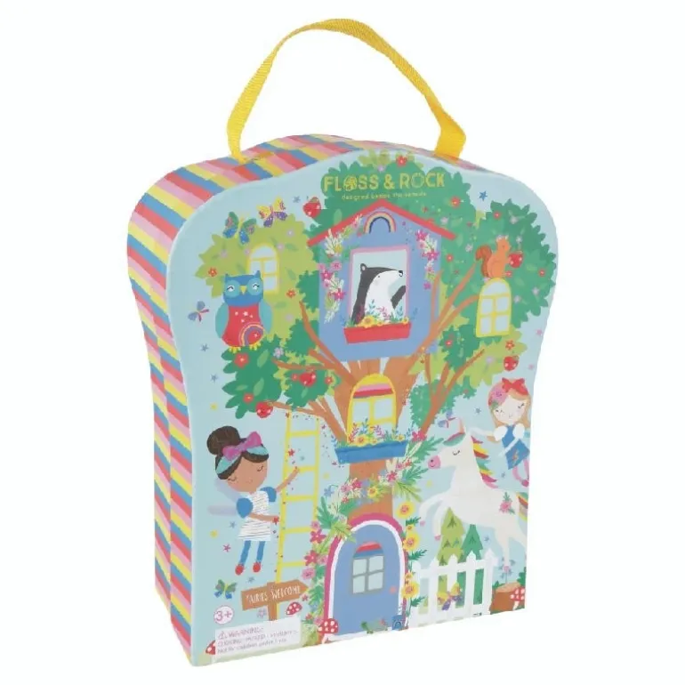Vores lyse og smukke regnbue kuffert er perfekt tilat tage med på farten. Den genanvendelige æske foldes ned for at afsløre fire sjove rum og en smuk have. Fantasien vil løbe løbsk med 10 dobbeltsidede træfigurer, inklusive feer, enhjørninger, en hulahopring-bjørn og en rulleskøjte-lama! Når du er færdig med at lege, kan du putte dine træfigurer i den praktiske bomuldstaske med snoretræk, lukke din æske og bruge det seje bærehåndtag til at tage den af ??på dit næste eventyr.
