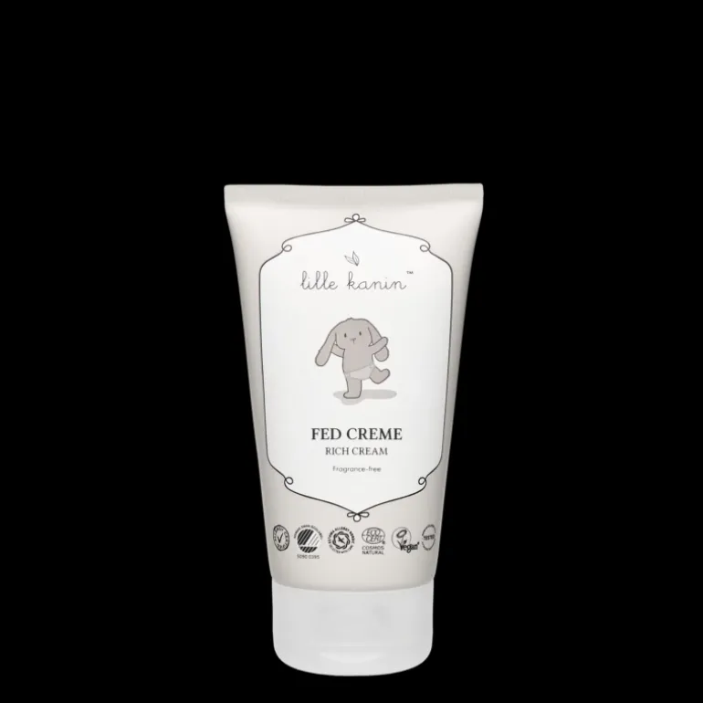 En fed creme der er rig på olier. Cremen lægger sig som en hinde på huden, der forhindrer at vand trænger igennem, samtidig med at huden stadig kan ånde. Lille Kanin Fed Creme har et fedtindhold på 53 % og er specielt god til tørre kinder, eller hvis dit barn har tendens til tør hud. Indeholder økologisk solsikkeolie, kokosolie og naturligt E-vitamin.