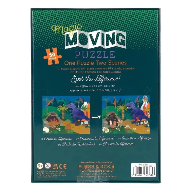 Forbered dig på at blive blæst bagover af vores fantastiske Magic Moving Puslespil! Du vil have så meget sjov med den magiske overflade, der får den fantastisk T-rex, store Stegosaurus og meget andet bevæge sig lige foran dine øjne. Fuldfør puslespillet med 50 store, tykke puslespilsbrikker, og når det er færdigt, kan du have det endnu sjovere med at flytte det fra side til side for at få magien til at ske!
