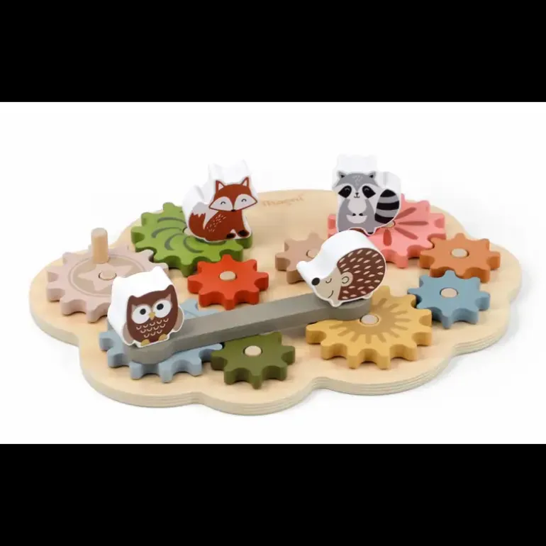 Magni aktivitetsbræt med tandhjul og dyr 100% FSC træ
