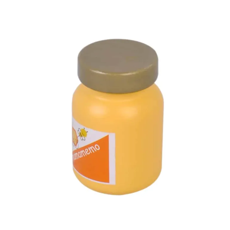 Mamamemo Honning kan bruges til te, på brød og mange andre ting. Derfor skal børn naturligvis også have det i deres legekøkken. Mamamemo har lavet et Honningglas i træ.