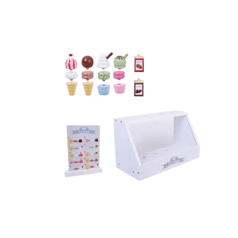 Mamamemo Isbar, virkelig fin isbod i træ til timevis af sjov rolleleg med at købe, sælge og lave is. Der medfølger alt hvad børnene skal bruge, for at kunne lave forskellige farverige isvafler og isbægre og på tavlen kan man dels vælge is, eller på bagsiden hente inspiration til hvordan de enkelte is sammensættes. Et rigtig godt stykke legetøj der indbyder til rolleleg, som vil udvikle børns kreativitet, ordforråd og sociale færdigheder.
