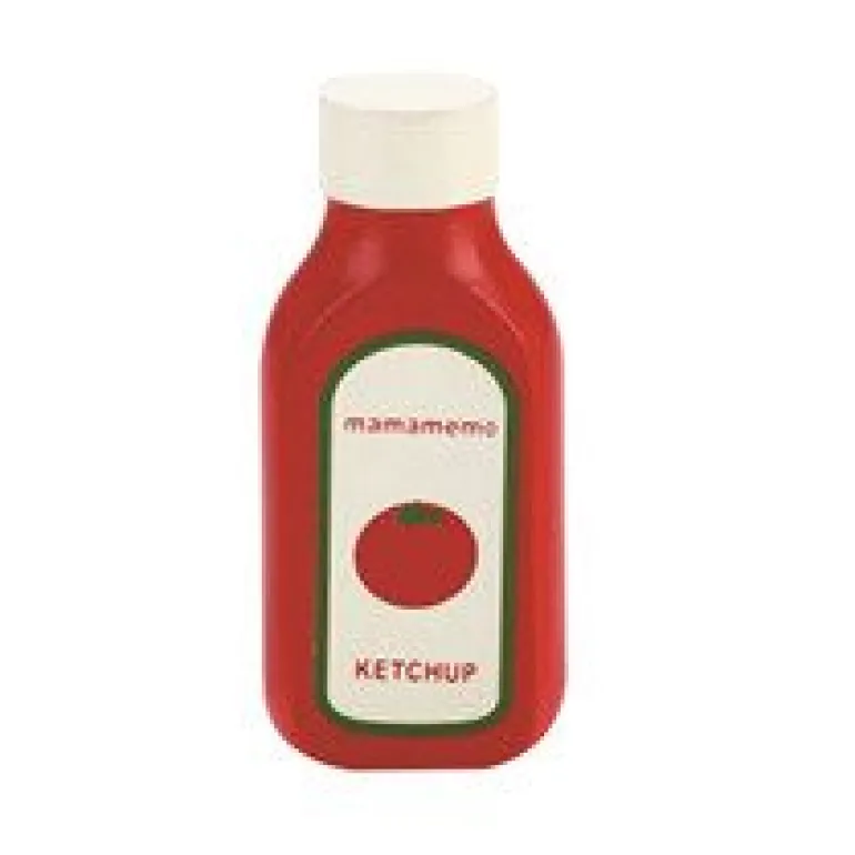Mamamemo Ketchup. Fin lille ketchup i farverigt træ fra mamamemo til den lille købmand eller kok. En god børnestørrelse, der er nem at holde om og lege med for små hænder. Er godkendt til børn fra 2 år. Sjov legemad i træ, der vækker genkendelse hos barnet. Super flot designet legemad med en flot finish.