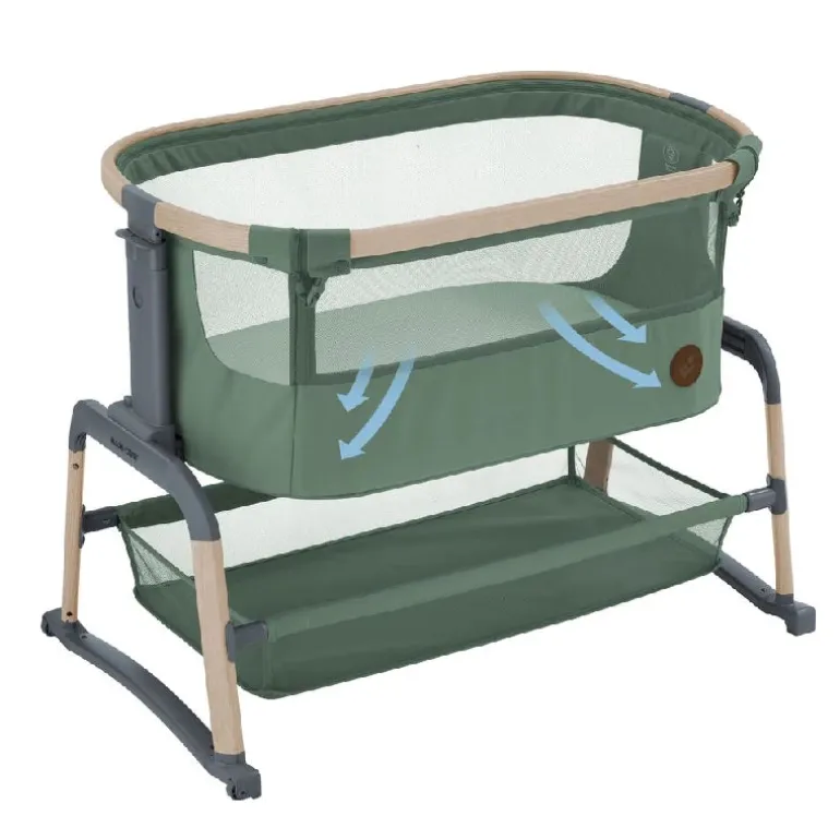 Maxi Cosi Iora Air er en side by side seng der er designtil at have have den lille I nærheden hele tiden. Iora har hjul i den ene side, så den er nem at flytte rundt i huset. Der er desuden vippe funktion så man kan vippe den lille I søvn. Lavet med blødt premieum stof. Stoffet er 100% genanvendt materiale med mesh hele vejen rundt. Kan bruges fra 0-6mdr. Maks 9 kg.