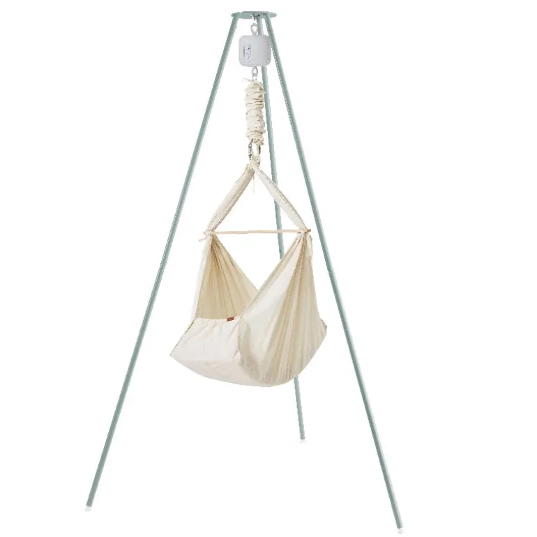 Designet og udviklet i Danmark. Basic vuggestativ er specialdesignet til brug af slyngevugge og tvillingeslyngevugge – både med og uden vuggemotor.