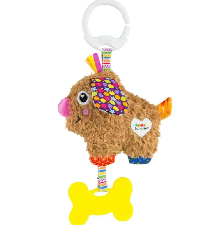 Sjov rangle udformet som en lille hundehvalp. Den har spændende teksturer der hjælper med at udvikle finmotorik. Utrolig nem at have med på farten med Clip & Go systemet.