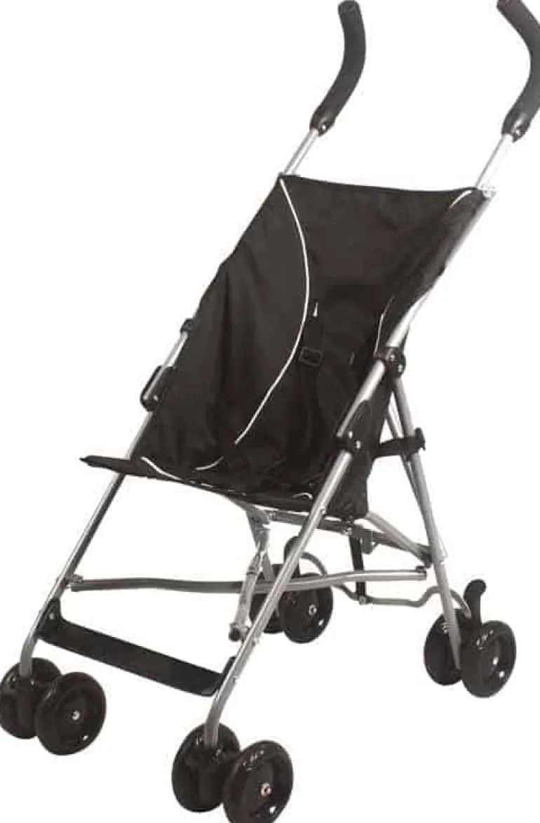 Helt enkel og let paraplyvogn til at tage med overalt. Dobbelt affjedrede hjul, slidstærkt betræk og 5-punktssele. Uden ryglænsregulering. Fås i sort Vægt: 4,5 kg. Styrhøjde: 98 cm. Sædemål: 70×32 cm.