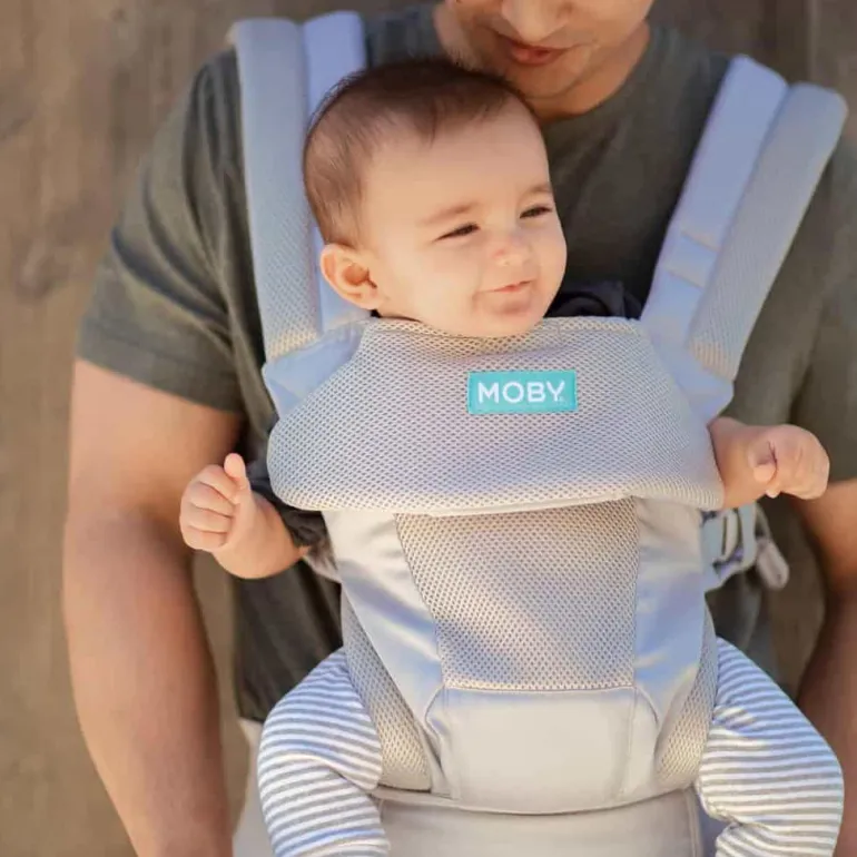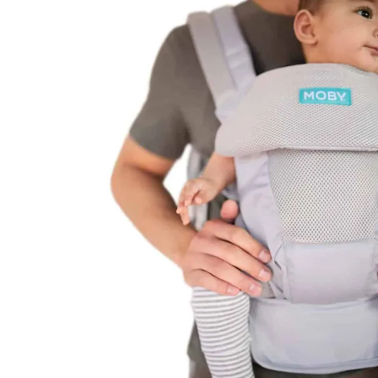 Moby Move All Position Carrier: en let, åndbar bæresele designet med et enkelt sæt brugervenlige justeringer. Kan bruges fra nyfødt uden brug af indsats, ergonomisk og behagelig for baby. Enkel at bruge, men alligevel fyldt med smarte funktioner, Moby Move har det hele g er klar til at holde forældre på farten, når deres babyer vokser fra nyfødt til toddler. 4 positioner: indadvend, udadvent, hofte, ryg