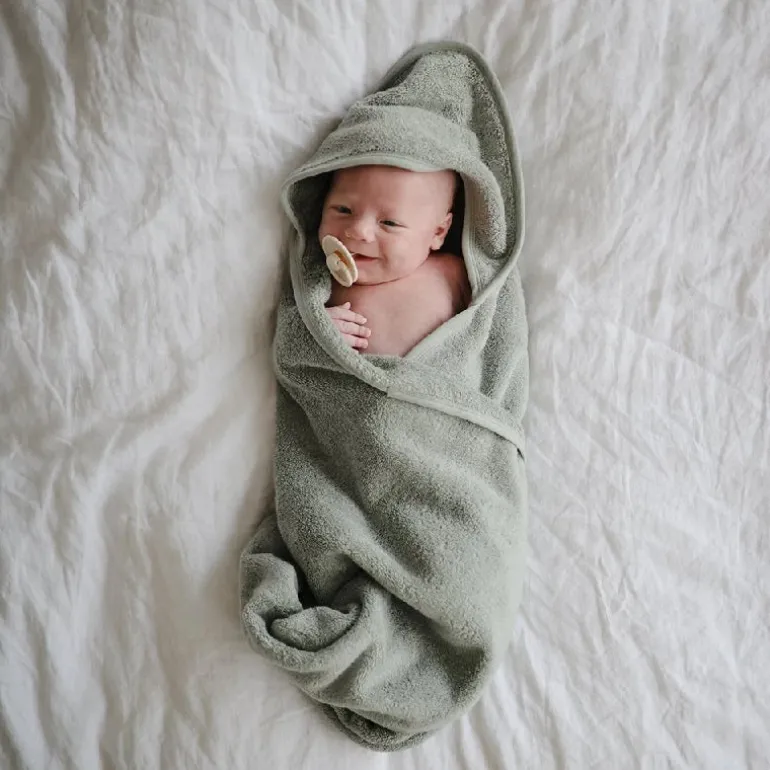 Materialet er blødt, absorberende og slidstærkt, samtidig med at det er skånsomt mod babys sarte hud. Hættehåndklædet holder din baby varm og tør fra top til tå efter badet.
