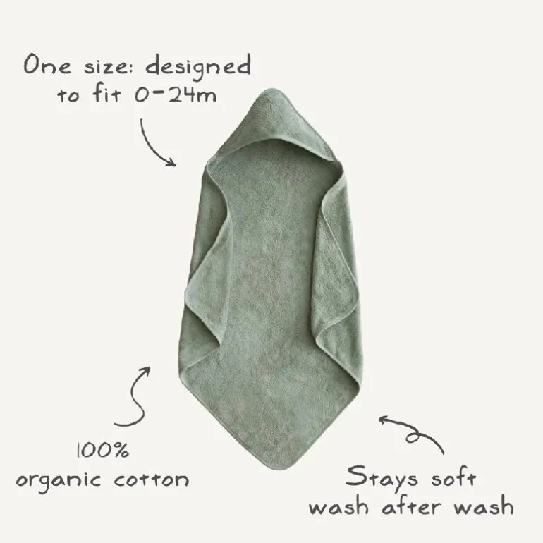 Håndklæde med hætte i 100% økologisk bomuld perfekt til hyggelige og trygge kram efter badet.