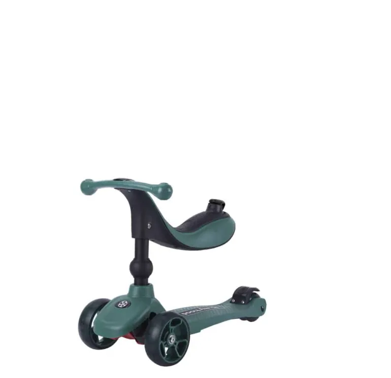 Når balance og motorik er tilstrækkelig udviklet kan Kick’n’Ride nemt omdannes til et smart løbehjul. To store hjul foran og en mindre bagerst gør løbehjulet måde stabilt og nemt at køre på.