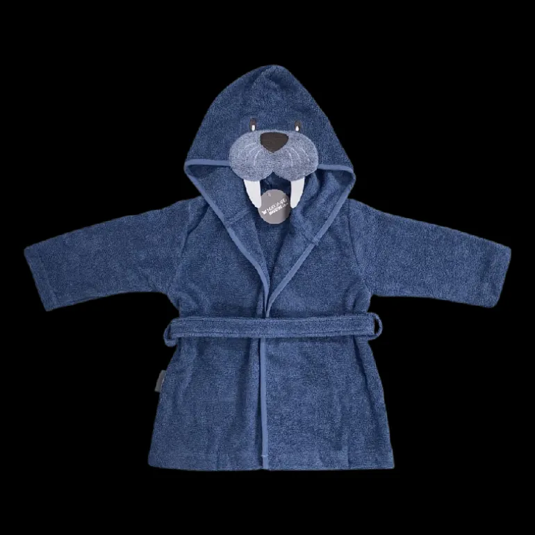 Lækker frotté badekåbe fra Nørgaard Madsen i en flot mellemblå farve m/ hvalros på hætten str. 2 år. Oeko Tex certificeret bomuld.