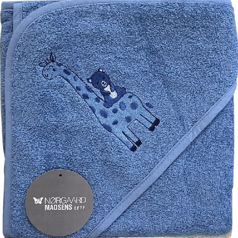 Lækker frotté badeslag fra Nørgaard Madsen i en flot mellemblå farve farve m/ en sød giraf broderet på hætten. Badeslaget måler 75×75 cm. Oeko tex certificeret bomuld.