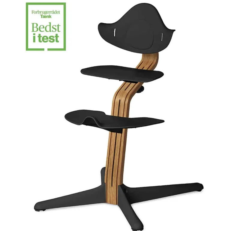 Når barnet selv kan kravle op og ned, tages Nomi Mini af. Sæde og fodplade justeres trinløst i takt med, at barnet vokser. Stammens form sikrer, at dybden på sæde og fodplade automatisk tilpasses. Den åbne konstruktion inspirerer til fri bevægelse og gør det nemt for barnet at komme op og ned, samt trække sig ind og ud fra bordet.