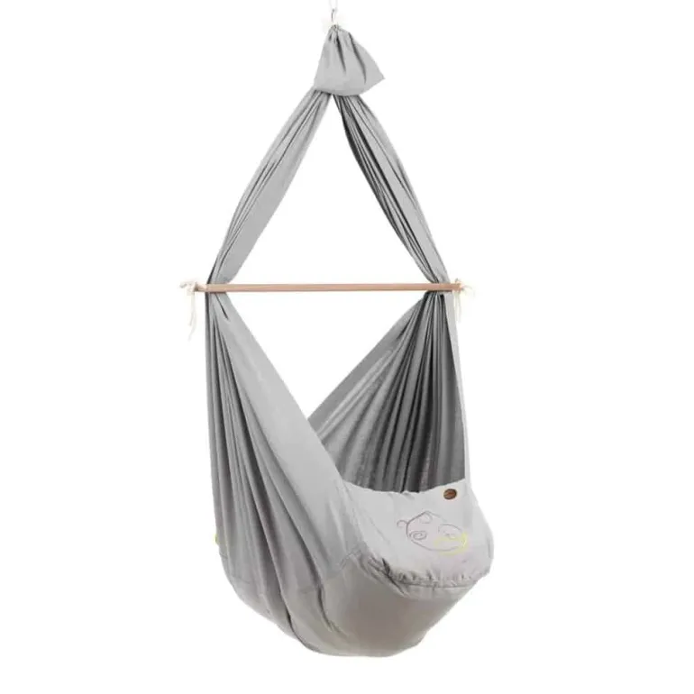 NONOMO® hængevuggen i GOTS certificeret bomuld er specielt god hvis dit barn har svært ved at falde i søvn. Nonomos fjeder vil hjælpe på en naturlig måde ved at rokke dit barn op og ned, ligesom i mors mave. Vuggen er formet ergonomisk, på denne måde fordeles barnets vægt jævnt og giver barnets ryg en sund og buet form. Dette aflaster noget af presset på halebenet og forhindre barnets hoved i at blive fladt.