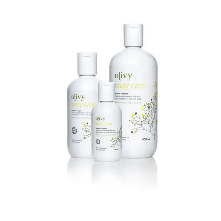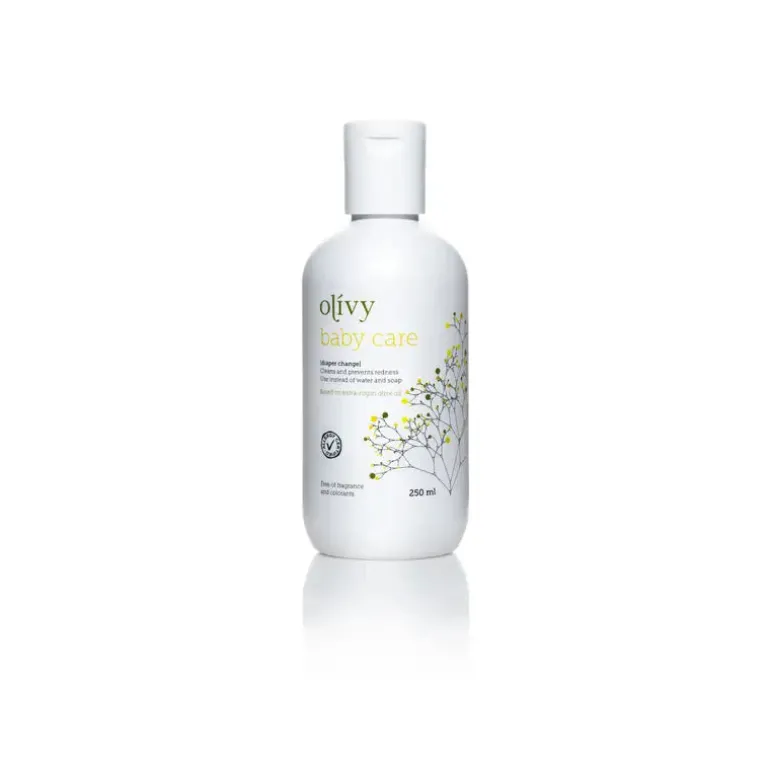 Olívy er et sundt alternativ til vand, sæbe og vådservietter ved bleskift. Det er en 3-i-1-løsning, som renser, plejer og beskytter huden under bleen, og som effektivt forebygger alle former for rødme og hudirritationer. Med sin naturlige blanding af ekstra jomfruolivenolie og den milde kalkløsning, kan du bruge Olívy med god samvittighed – fra barnet er nyfødt. 250 ml anbefales til pusletasken.