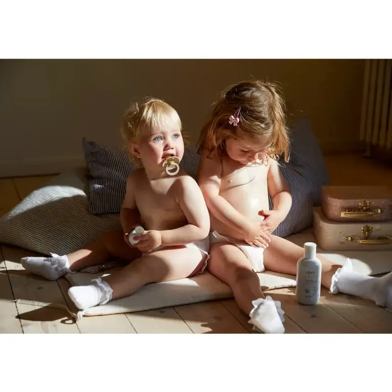*Det er vigtigt at bruge den rette mængde. Olívy virker i tre stadier: Den renser, plejer og beskytter huden mod fugten og affaldsstofferne fra den næste fyldte ble.