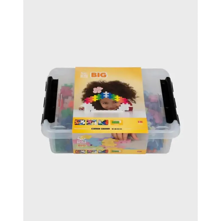 Plus-Plis BIG opbevaringskasse indeholder alt hvad du skal bruge for at komme igang med at bygge med Plus-Plus! Desuden får du en perfekt kasse til at opbevare alle dine Plus-Plus, så du nemt kan tage dem frem og rydde dem op igen. Dette produkt indeholder 200 Plus-Plus Big (100 basiv, 50 neon, 50 pastel) 2 byggeplader samd en guidebog hvor du kan finde masser af inspiration. Kassen måler 40×30 x 13 cm. Produktet er naturligvis kompatibelt med alle andre Plus-Plus Big produkter. Plus-Plus Big er særligt lavet til at være helt sikre at lege med og passer perfekt til små hænder. Anbefalet alder: Fra 2 år.