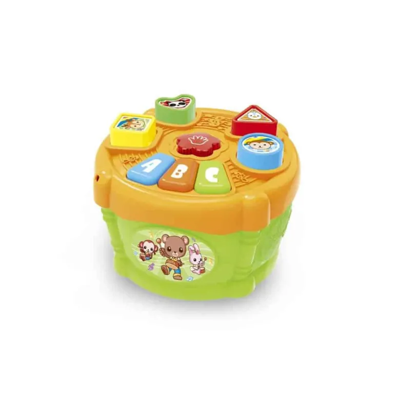 Puttekasse fra Scandinavian Baby Products. Lær barnet om former og farver med put-i-hul musiktrommen. Alle klodser har flotte farver og forskellige former. Barnet kan trykke på hænderne på trommen, hvorefter der lyder en sjov klapsalve.