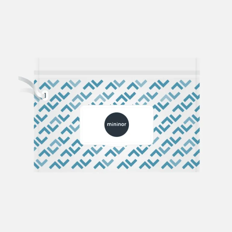 Rejsetaske til Mininor Dry Wipes er emballagen du kan genbruge til dine tørservietter. Tasken er vandtæt, så den er perfekt når man vil lave tørservietterne om til vådservietter. Tasken rummer 20-25 tørservietter og der går ca. en kvart liter vand til at gennemvæde 20 stk tørservietter.