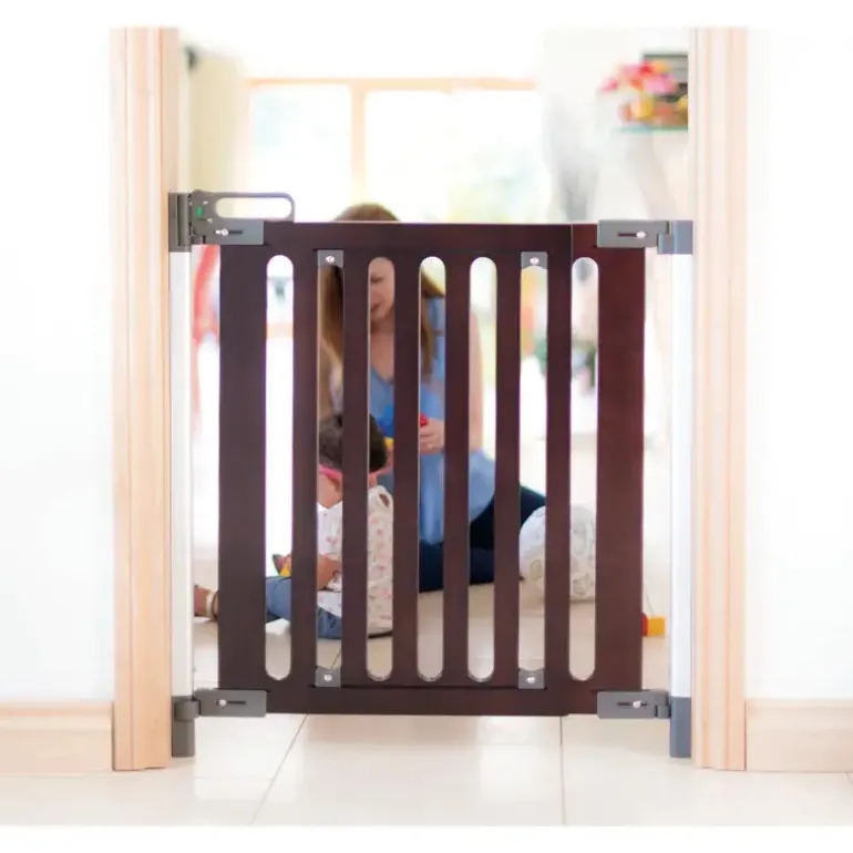 Skruemonteret sikkerhedsgitter for børn.Dette sikkerhedsgitter er anvendeligt i alle stærke og ubeskadigede åbninger.Unikt skruebaseret installationssystem af ekstruderet aluminium. Kan nemt aftages midlertidigt uden brug af værktøj.Er perfekt til at anvende på toppen af trapper. Ingen risiko for at snuble over gitteret.Gitteret kan åbnes fuldt i hele åbningens bredde og i begge retninger.Mulighed for at blokere den ene vej for at undgå åbning over f.eks. trapper.Indbygget tryk-og-løft-funktion for nem betjening. Svært for børn, men enkelt for voksne.Fleksibel montering, tillader vinkler i åbninger op til 180 grader.